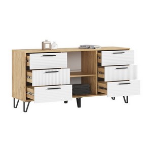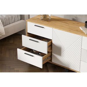 Комод Флэш 1500 (браш вайт, дуб крафт) выполнен в современном стиле. Вместительные ящики и полки позволят организовать место для хранения всех необходимых предметов.