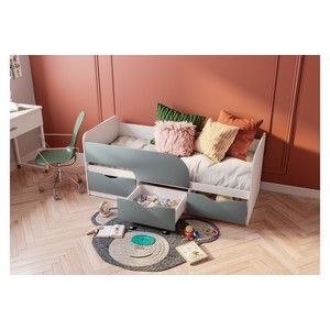 Кровать комплектуется тремя вместительными ящиками, в которых вы можете разместить игрушки, постельное белье и даже одежду ребенка.