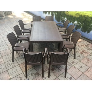 Обеденный комплект коричневый под искусственный ротанг - Невада МАКСИ и 8 кресел Невада