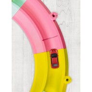 Яркая круглая конструкция с одним сидением и водным каналом станет любимым местом для игр на даче, во дворе или в помещении.