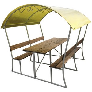 Комплектация: каркас - 1 шт., лавка - 2 шт., стол - 1 шт., поликарбонатная крыша - 1 шт.