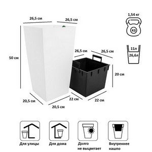 Кашпо для цветов Urbi Square DURS265-S449 11 и 26,6 л (белый)