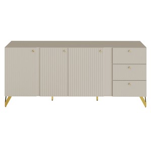 Комод объединяет три выдвижных ящика и три распашные дверцы, за которыми скрывается удобное внутреннее пространство с полками.
