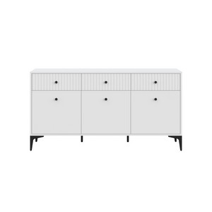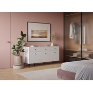 Комод MOON КМ-2.1 оснащен тремя вместительными выдвижными ящиками и тремя распашными дверцами, что обеспечивает удобное разделение пространства для хранения различных категорий вещей.