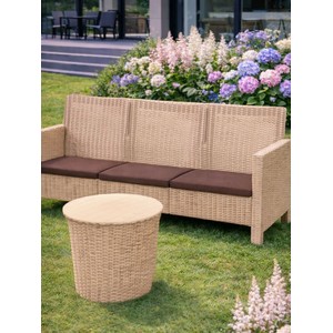 Комплект 2 садовых кресла, трехместный диван и столик под ротанг СадКо (бежевый с коричневыми подушками)