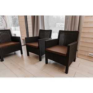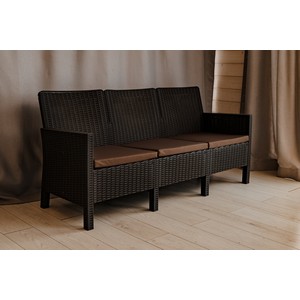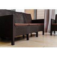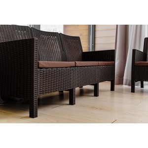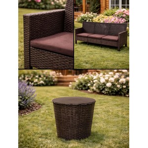 Комплект 2 садовых кресла, трехместный диван и столик под ротанг СадКо (темно-коричневый с коричневыми подушками)