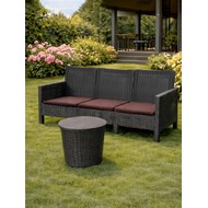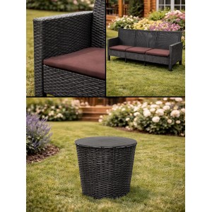 Комплект 2 садовых кресла, трехместный диван и столик под ротанг СадКо (темно-серый с коричневыми подушками)