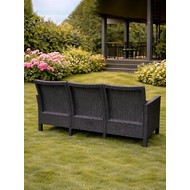 Стильный и практичный комплект из двух кресел, трехместного дивана и кофейного столика с эффектным плетением под ротанг, созданный для комфортного отдыха в саду, на террасе или у бассейна.