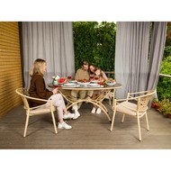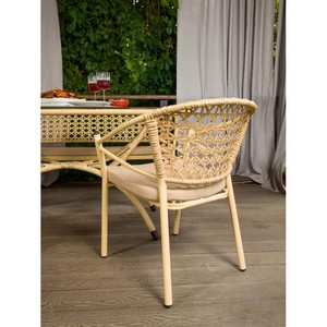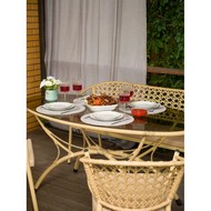 Благородный оттенок искусственного ротанга придает комплекту природную теплоту и визуальную легкость.
