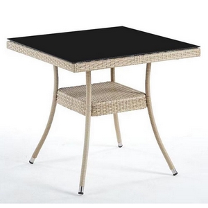 Плетеный стол с квадратной столешницей.