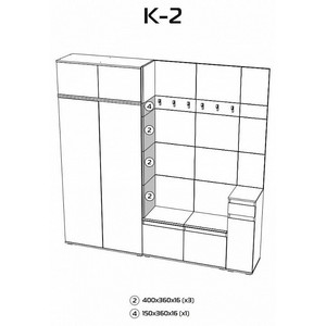 Компоненты, входящие в комплект: 1 панель настенная - 360х150х16 (мм) 3 панели настенные - 360х400х16 (мм).