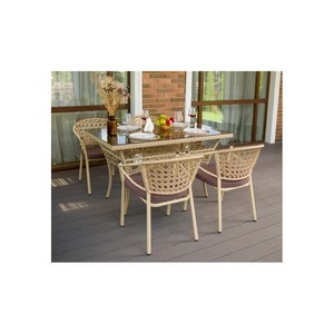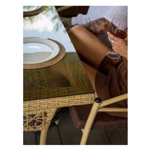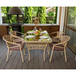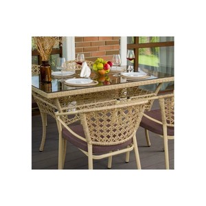 Искусная оплетка из искусственного ротанга придает комплекту изысканный вид.