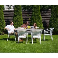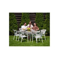 Комплект садовой мебели стол Адлер 1,6 м и 6 стульев Латте с ротангом (белый)