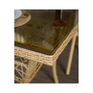 Материал изделия: каркас - металл с порошковым покрытием, плетение - искусственный ротанг, столешница - закаленное стекло.