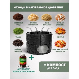 Усиленная конструкция с ребрами жесткости и двумя дверцами-люками обеспечивает долговечность, удобство загрузки и извлечения компоста.