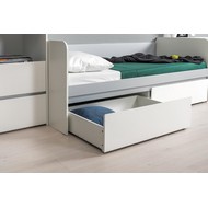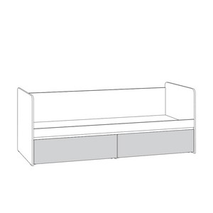 Кровать оснащена двумя выкатными ящиками на колесных опорах.