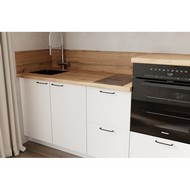 Цельная столешница без видимых стыков для простоты ухода, сменные металлические ручки, не требующие пересверливания.