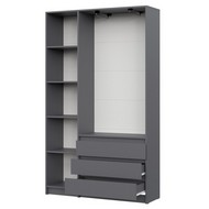 Распашные дверцы с полным доступом к внутреннему пространству, многоуровневая система полок для рационального хранения и встроенная штанга для размещения одежды на плечиках.