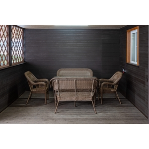 Особенности: Садовый комплект Мэдисон прекрасно впишется в любой интерьер. Станет украшением как участка у частного дома так и внутри. Прочный и долговечный. Не требует особого ухода и чистки. Состоит из двух диванов, кресел и стола. Устойчив и вместителен. Отлично подойдёт для вечерних посиделок всей семьёй и друзьями. Погодостойкий. Вес стола - 20 кг, вес кресла - 7,6 кг, вес дивана - 12 кг.
