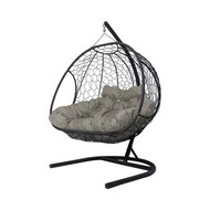 Подвесное кресло ДОБРЫНЯ с ротангом (черный с серой подушкой)
