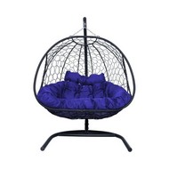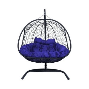 Подвесное кресло ДОБРЫНЯ с ротангом (черный с синей подушкой).