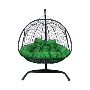 Подвесное кресло ДОБРЫНЯ с ротангом (черный с зеленой подушкой).