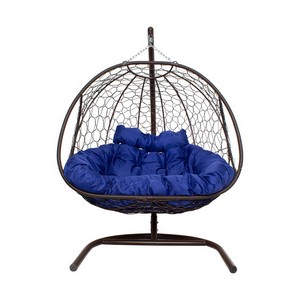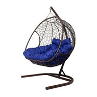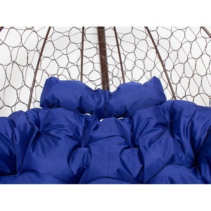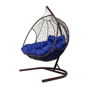 Подвесное кресло ДОБРЫНЯ с ротангом (коричневый с синей подушкой)