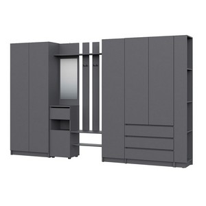 Комплект обеспечивает раздельное хранение для всех категорий вещей: от объемной одежды и обуви до аксессуаров и сезонных предметов, создавая при этом целостную и упорядоченную композицию.