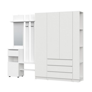 Включает вешалку с зеркалом, трехстворчатый шкаф, а также угловое завершение.