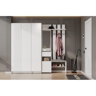 Комплект обеспечивает раздельное хранение для всех категорий вещей: от объемной одежды и обуви до аксессуаров и сезонных предметов, создавая при этом целостную и упорядоченную композицию.
