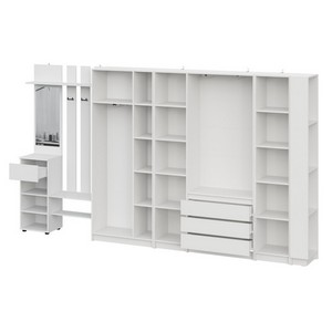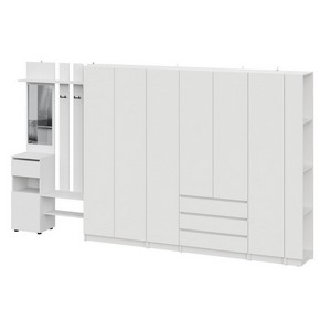 Комплект обеспечивает раздельное хранение для всех категорий вещей: от объемной одежды и обуви до аксессуаров и сезонных предметов, создавая при этом целостную и упорядоченную композицию.