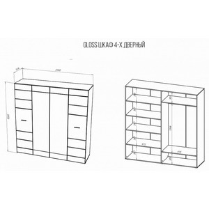 Комплектация: 1 штанга для вешалок, 4 дверцы, 6 полок.