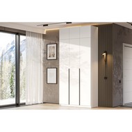 Просторное отделение со штангой для размещения одежды на плечиках, закрытая секция с пятью полками предназначена для хранения вещей.