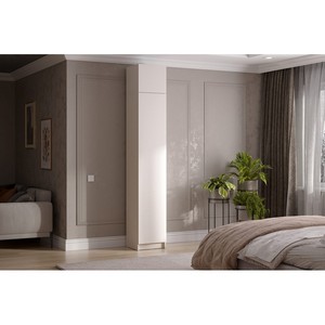 Модель сочетает лаконичный дизайн с продуманной функциональностью, оптимально используя вертикальное пространство комнаты.