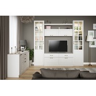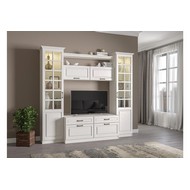 Шкаф-витрина Ливерпуль выполнена в белом цвете имитирующим крашеный массив.