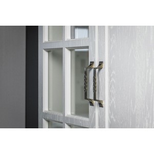 Комбинированный фасад с прозрачными стеклянными вставками и изящной ручкой цвета античной бронзы.
