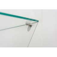 За распашной дверцей шкафа расположены четыре полки, две верхних из которых выполнены из стекла.