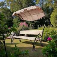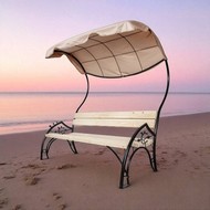Цвет: каркас - черный, сиденье и спинка - дерево, тент - бежевый.