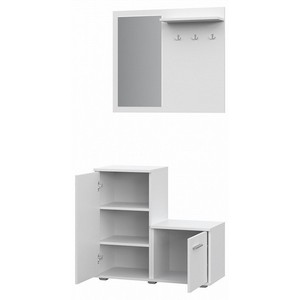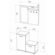 Компоненты, входящие в комплект: 1 вешалка настенная - 800x166x700 (мм), 1 тумбочка - 400x340x378 (мм), 1 тумбочка - 400x340x735 (мм).