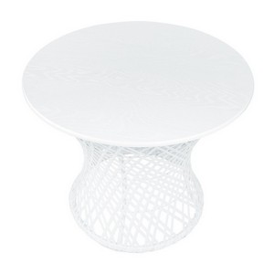 Плетеная фактура придает столу природное очарование и визуальную легкость.