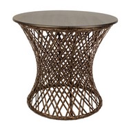 Плетеная фактура придает столу природное очарование и визуальную легкость.