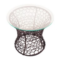 Плетеная фактура придает столу природное очарование и визуальную легкость.