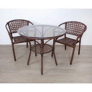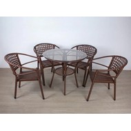 Материал изделия: каркас - металл с порошковым покрытием, плетение - искусственный ротанг, столешница - закаленное стекло.