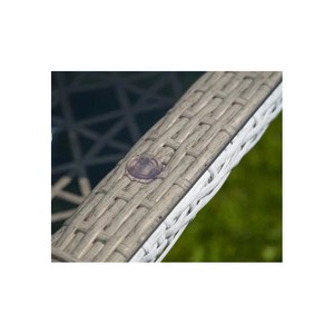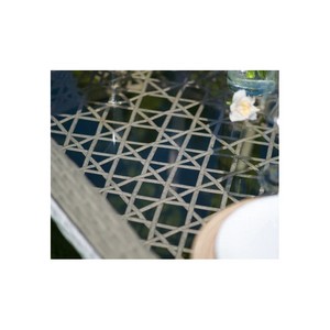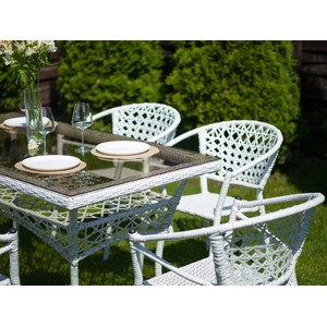 Искусное плетение из искусственного ротанга создает привлекательный визуальный эффект и добавляет столу легкости и элегантности.