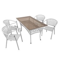 Материал изделия: каркас - металл с порошковым покрытием, плетение - искусственный ротанг, столешница - закаленное стекло.