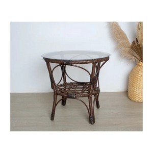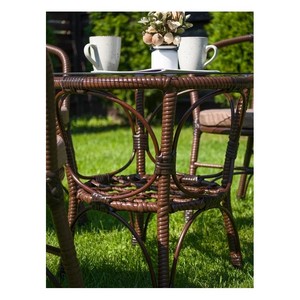 Материал изделия: каркас - металл с порошковым покрытием, плетение - искусственный ротанг, столешница - закаленное стекло.