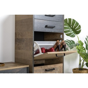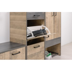 Тумба для обуви Трувор 13.241.06 состоит из двух выдвижных ящиков и двух обувниц с откидной дверцей.