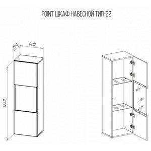 Компоненты, входящие в комплект: 1 дверца, 2 полки.
