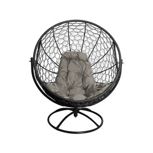 Вращающееся кресло с ротангом (черное с серой подушкой)