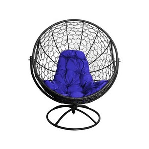 Вращающееся кресло с ротангом (черное с синей подушкой).